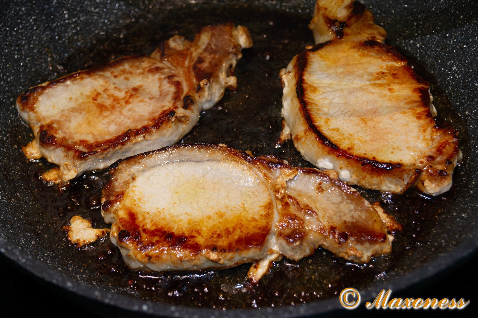 1. В сковороде на сильном огне обжаривать на оливковом масле отбивные по 5 минут с каждой стороны.