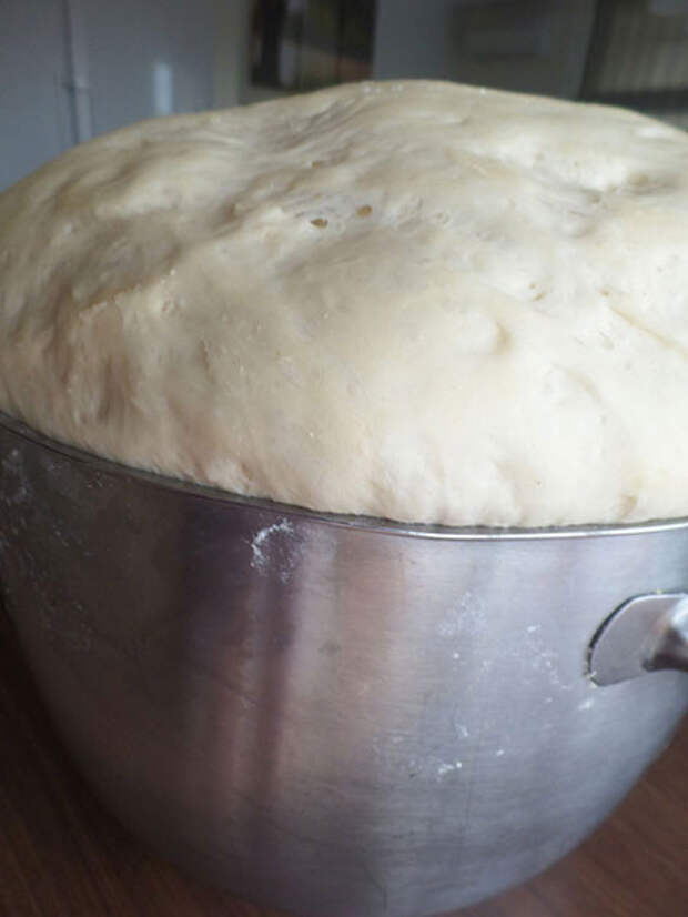 Примерно через два часа тесто поднимется первый раз. Смажем руки растительным маслом и примнём его хорошенько. Так оно должно у нас подняться ещё раза три-четыре.
